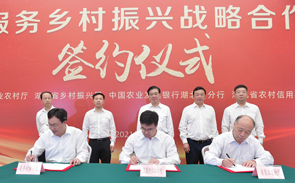 “當(dāng)前,湖北省上下正按照省委、省政府的安排部署,齊心協(xié)力推進(jìn)農(nóng)業(yè)產(chǎn)業(yè)化發(fā)展,同心同向?qū)嵤┼l(xiāng)村振興戰(zhàn)略,迫切需要我們的金融機(jī)構(gòu)輸入黃金血液、注入強(qiáng)大動(dòng)能!焙笔∥r(nóng)辦主任,省農(nóng)業(yè)農(nóng)村廳黨組書(shū)記、廳長(zhǎng),省鄉(xiāng)村振興局黨組書(shū)記吳祖云介紹,“今天和兩家金融機(jī)構(gòu)正式簽訂戰(zhàn)略合作協(xié)議,標(biāo)志著合作邁入快速發(fā)展軌道,以實(shí)際行動(dòng)向黨的百年華誕獻(xiàn)禮!