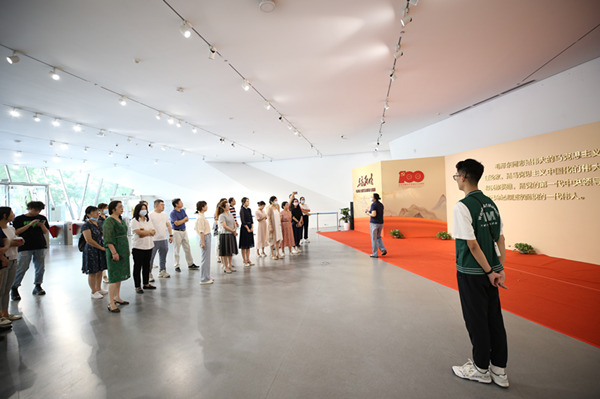在慶祝建黨100周年來(lái)臨之際,洪山區(qū)科協(xié)準(zhǔn)確把握黨史學(xué)習(xí)教育精神實(shí)質(zhì)和深刻內(nèi)涵,緊密聯(lián)系科普工作實(shí)際,充分發(fā)揮轄區(qū)高校資源優(yōu)勢(shì),創(chuàng)新學(xué)習(xí)形式,將黨史學(xué)習(xí)教育的課堂“搬進(jìn)”武漢大學(xué)。在洪山區(qū)科協(xié)組織下,科普展教聯(lián)盟成員單位一起參觀了武漢大學(xué)萬(wàn)林藝術(shù)博物館舉辦的“東方欲曉毛澤東主席藝術(shù)形象”主題展。