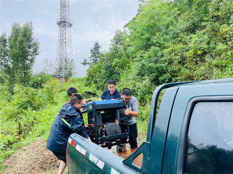 搶修人員抬油機(jī)趕往受災(zāi)區(qū)域給基站供電