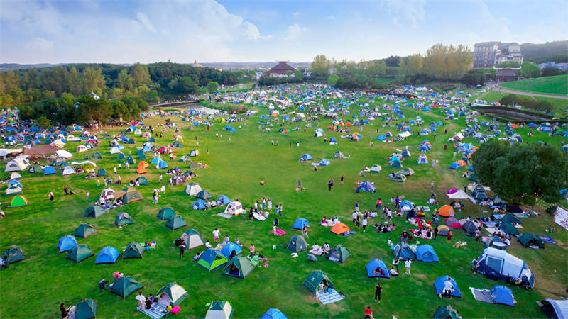 人們舉家出游,在草地上搭帳篷做游戲。中秋假期,木蘭草原火爆出圈。據(jù)景區(qū)統(tǒng)計,木蘭草原景區(qū)中秋游客接待量5.8萬人次,霸屏抖音人氣出游榜第一名。