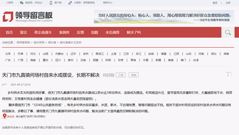 人民網(wǎng)“領(lǐng)導(dǎo)留言板”截圖