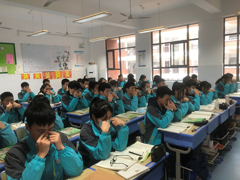 曹禺中學(xué)學(xué)生做眼保健操。 陳俊杰攝