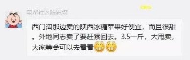 陜西小夫妻的蘋果壓在手上,也壓在社區(qū)網(wǎng)格員們心上。在熊繁的帶動下,社區(qū)工作人員不僅幫著買,還紛紛當(dāng)起了“代言人”,在朋友圈打出了“銷售廣告”。