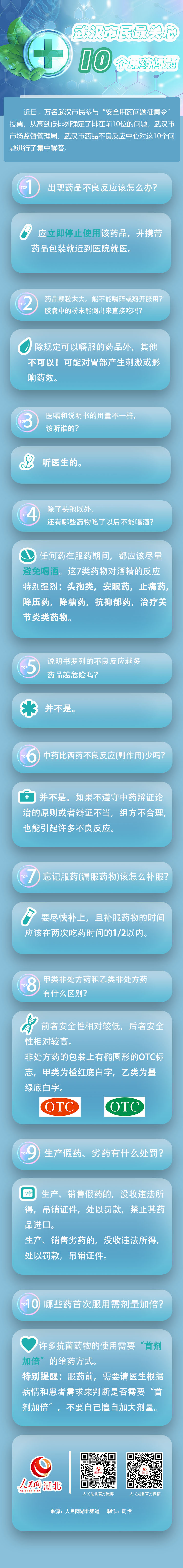 人民網(wǎng)武漢11月26日電 甲類(lèi)處方藥和乙類(lèi)處方藥有什么區(qū)別?生產(chǎn)假藥劣藥有什么處罰?藥品產(chǎn)生不良反應(yīng)該怎么辦?近日,武漢市市場(chǎng)監(jiān)督管理局舉辦的“安全用藥問(wèn)題征集令”活動(dòng)告一段落。過(guò)去20天時(shí)間里,近萬(wàn)市民參與了征集投票。最終,武漢市民最關(guān)心的10個(gè)用藥問(wèn)題正式出爐。