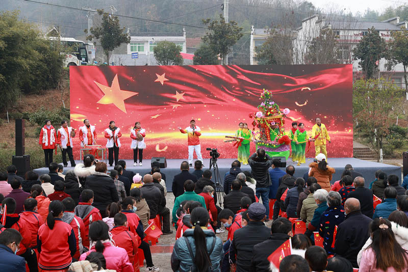 “沒有共產(chǎn)黨就沒有新中國,沒有共產(chǎn)黨就沒有新中國……”12月8日下午,在湖北省十堰市竹山縣寶豐鎮(zhèn)龍井村村頭廣場上,800多名黨員群眾齊聲高唱,歌聲嘹亮。一場別開生面的音樂思政課《六中全會精神進(jìn)農(nóng)家鄉(xiāng)村振興音樂行》在這里舉行。