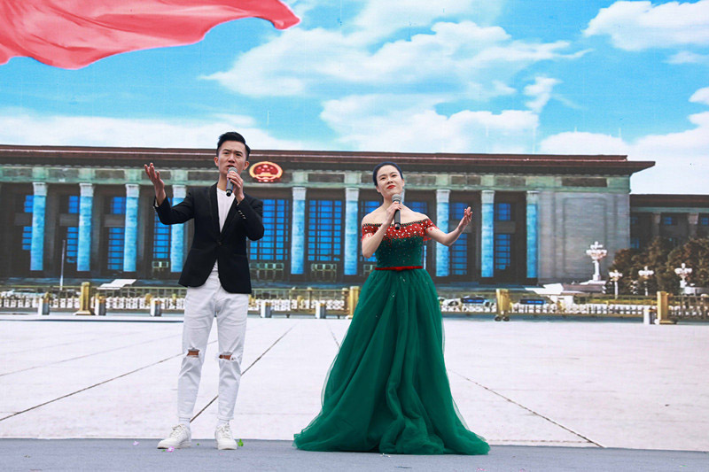 十堰市音樂家協(xié)會副秘書長周丹、 十堰市藝術(shù)劇院青年歌手付坤演唱《不忘初心》