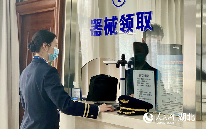 張蕾領(lǐng)取器械。人民網(wǎng) 張沛攝