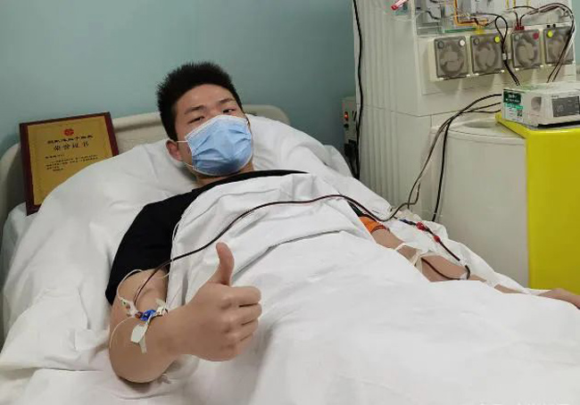 陳斌順利完成造血干細(xì)胞采集,為5歲男童送去了生的希望。共青團(tuán)湖北省委供圖