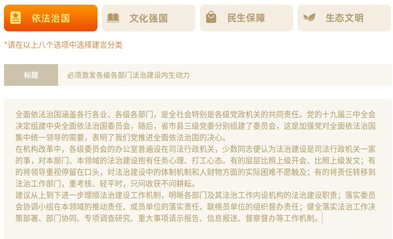 “我為黨的二十大建言獻(xiàn)策”|依法治國 湖北網(wǎng)友有話說