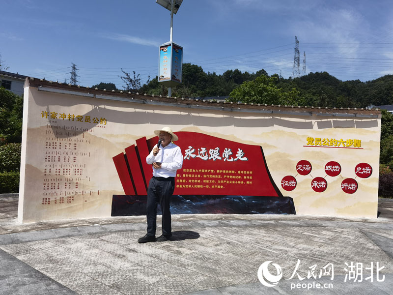 許家沖村黨支部書記望作戰(zhàn)吟唱《黨員公約》。人民網(wǎng) 張雋攝