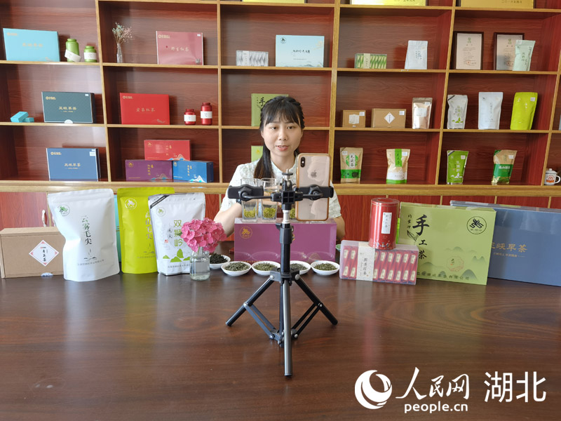 在許家沖村茶葉合作社的電商直播間里,合作社負(fù)責(zé)人望華鑫出鏡泡茶,向網(wǎng)友推薦家鄉(xiāng)的綠茶。
