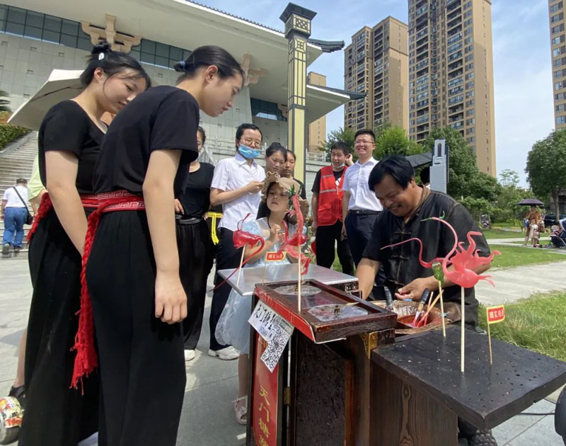 活動現(xiàn)場,不少市民在宣傳展板和非遺展臺前駐足流連,認真了解天門雜技、蓮花落、碟子舞等非遺文化,現(xiàn)場觀看天門糖塑、泥塑等手工作品制作,近距離感受文化遺產(chǎn)的獨特魅力。