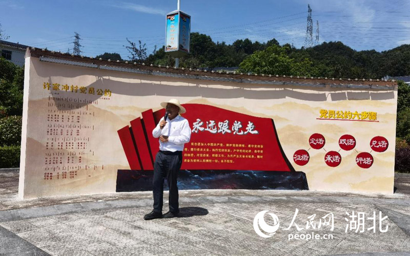 許家沖村黨支部書記望作戰(zhàn)吟唱《黨員公約》。人民網(wǎng) 張雋攝