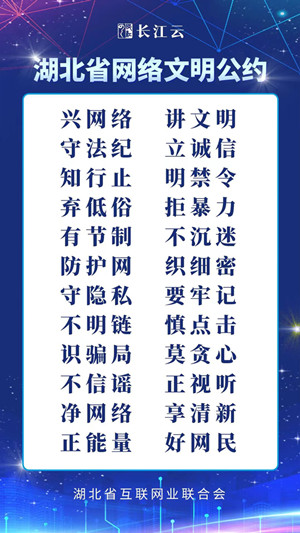 湖北省互聯(lián)網(wǎng)業(yè)聯(lián)合會發(fā)起《湖北省網(wǎng)絡(luò)文明公約》,號召全社會共同維護清朗的網(wǎng)絡(luò)空間。