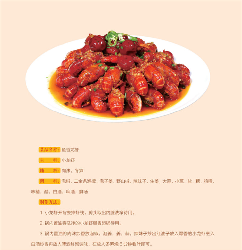 優(yōu)越的地理位置造就了潛江美食的底蘊(yùn)。燒、炒、燜、蒸……幾乎無所不包、無所不有。在漫長的歷史長河中,經(jīng)過一代代名師反復(fù)實踐,長期積累,逐步形成了選料考究、烹制方法多樣制作工藝精良的潛江特色飲食文化。傳統(tǒng)名菜二回頭、潛江花糕、水菜苔、峻米茶等菜品和小吃深受廣大食客好評。尤其是進(jìn)入新世紀(jì)以來,由潛江人精細(xì)烹制的“潛江油燜大蝦”,以其色澤鮮艷、湯汁香濃、香辣味美、營養(yǎng)豐富、食之回味無窮的特點,迅速在神州大地掀起了一股“紅色風(fēng)暴”,“潛江油燜大蝦”由此于 2011 年9月榮獲“中國名菜”稱號。借助上等的食材、精湛的烹飪和潛江人的好客與熱情,潛江餐飲由小到大,由弱到強(qiáng),由默默無聞到聲名遠(yuǎn)播,涌現(xiàn)了一大批各具特色的酒店、農(nóng)莊,創(chuàng)造了以“潛江小龍蝦”為主題的當(dāng)代傳奇。