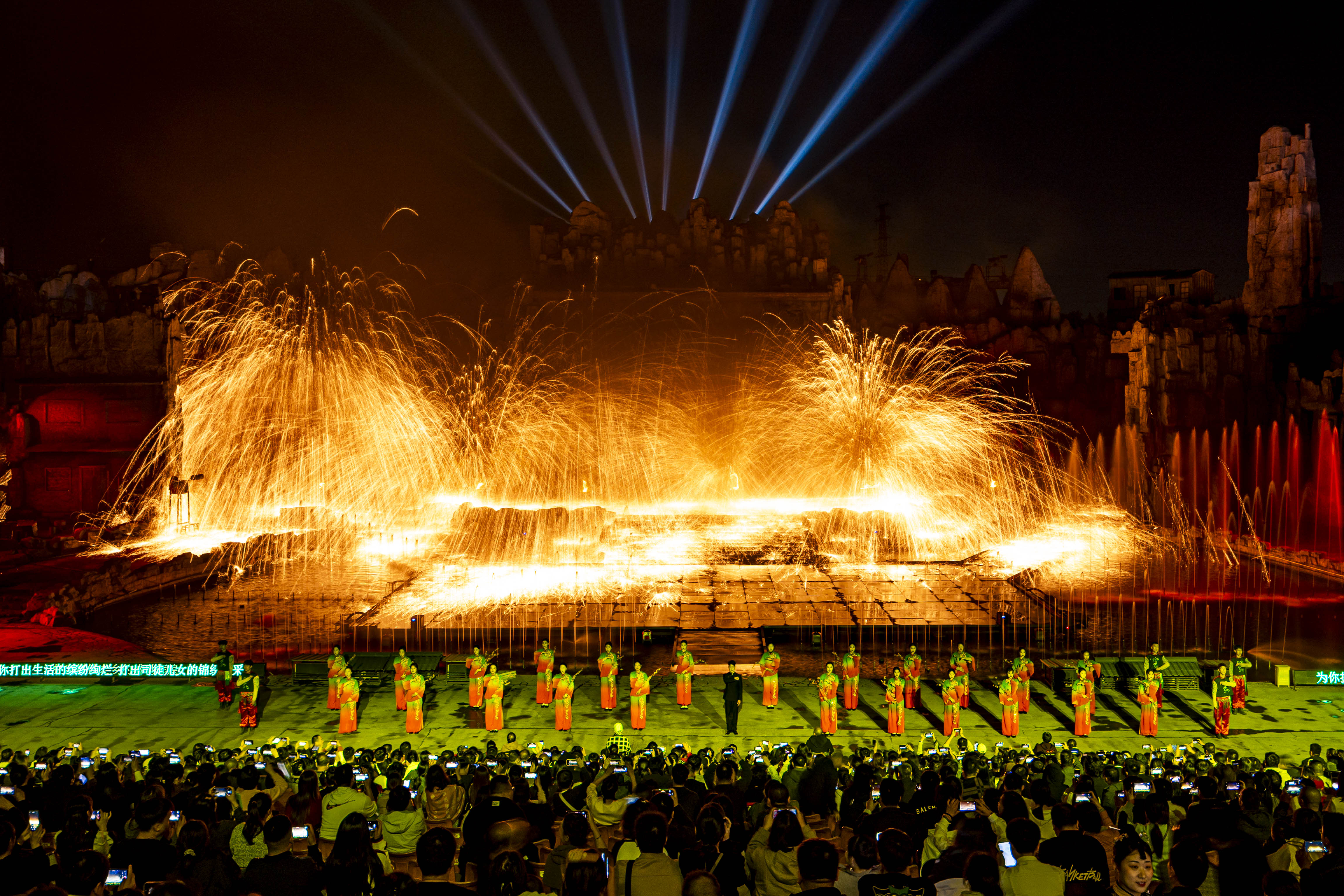 司徒小鎮(zhèn)《千年鐵魂》實景演出現(xiàn)場,鐵花飛舞。