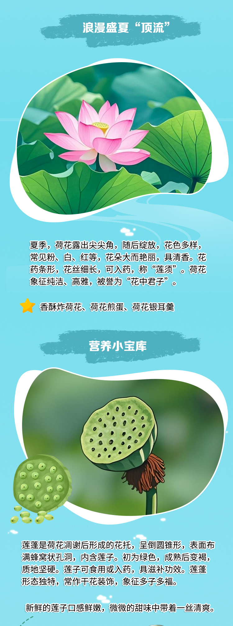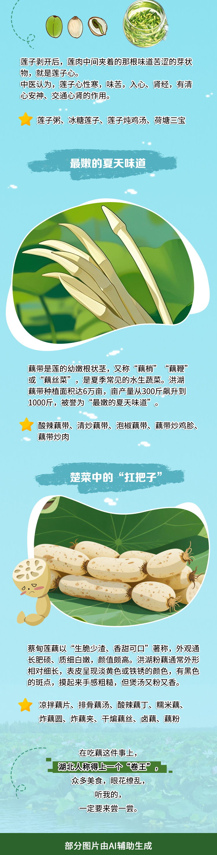 說起夏天的味道,你心中冒出的答案是什么? 都說“湖廣熟,天下足”,湖北湖澤廣闊、物產(chǎn)登封,江河湖泊數(shù)不勝數(shù)。對(duì)湖北人來說,夏天的味道可謂與荷塘密不可分。湖北的夏天有一種限定食材正當(dāng)時(shí),它就是全身都是寶,從花、葉、莖到種子都可以食用的荷花。