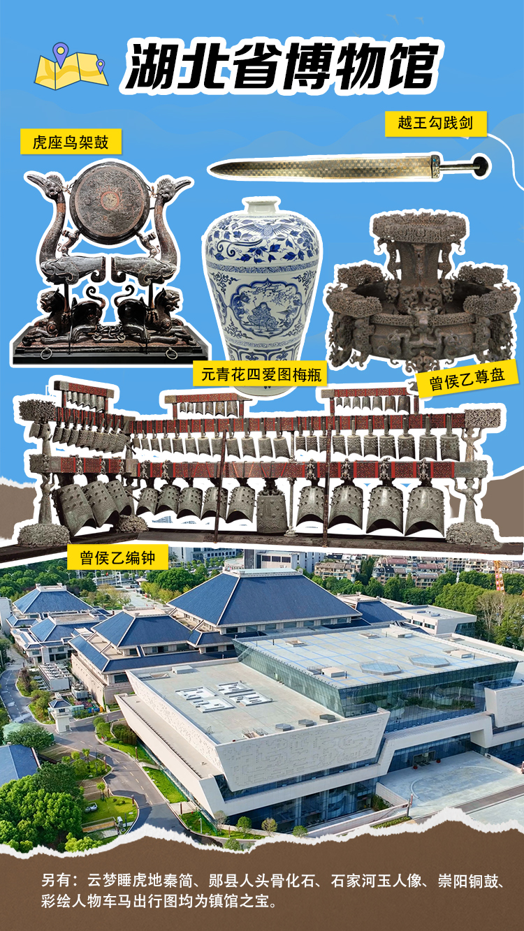 想不想聆聽曾侯乙編鐘的金石之音,觸摸戰(zhàn)國漆器的瑰麗紋樣?湖北的博物館藏著最動人的華夏密碼——武漢的青銅重器、荊州的楚漢瑰寶、鄂州的六朝青瓷、恩施的土司遺珍、云夢的秦代律簡……每件文物都在訴說跨越千年的故事。 來湖北,讓博物館成為你的時光機,在青銅與漆器、簡牘與絲帛之間,讀懂最浪漫的荊楚篇章!